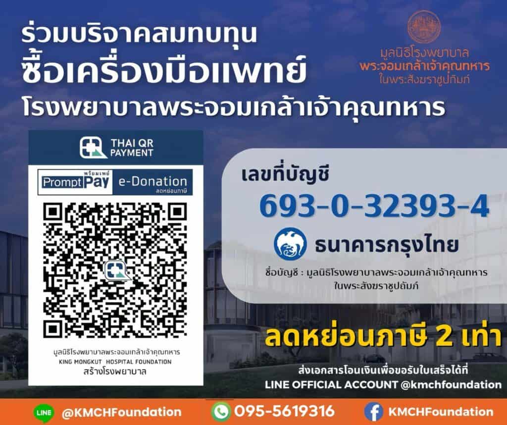 👉📲ติดต่อสอบถามข้อมูลเพิ่มเติมได้ ที่ Line OA ที่ @kmchfoundation หรือ โทร มือถือ 📲 095-5619316 / หรือเบอร์ 1448 กด 9 (ในเวลาราชการ)